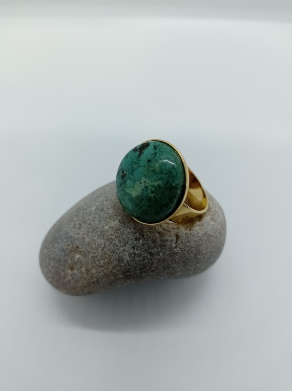 Cabuchón ovalado de Turquesa natural. Turquesa estabilizada - Esta turquesa natural hubo un tratamiento con una resina incolora en la superficie para aumentar la dureza, reducir la porosidad y rellenar las posibles grietas, sin modificar su estructura y color.