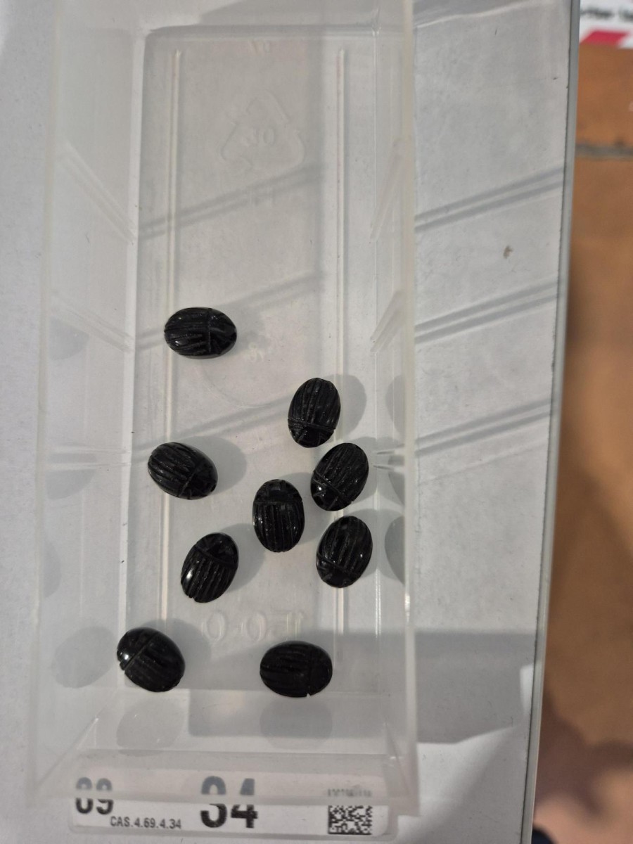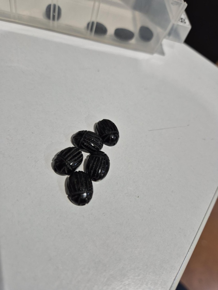 Mejore su bisutería con esta cuenta ovalada de ónix negro. Original y adorable, su forma de escarabajo ha sido grabada a mano. Este componente de joyería sorprenderá a muchos.