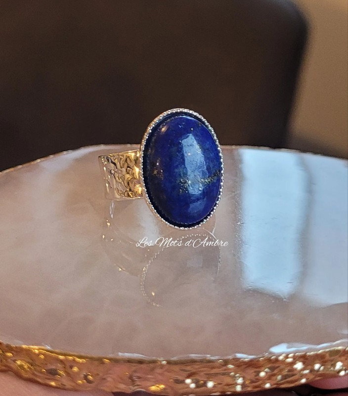 Anillo martillado ajustable para cabuchón 18x13 mm - Plateado x1