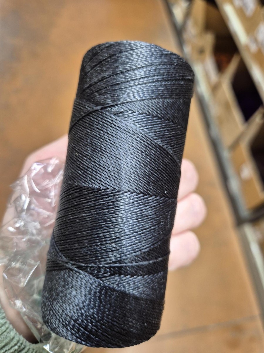 El hilo encerado brasileño Linhasita está hecho de 2 hebras de poliéster encerado, enrolladas juntas para formar un hilo de 0,5 mm de diámetro. Esta técnica lo hace fuerte, resistente al moho y lavable. La ventaja innegable de este hilo encerado es que ¡los nudos que hagas con él aguantan!