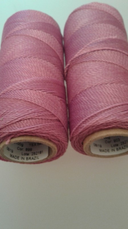 El hilo encerado brasileño Linhasita tiene 4 hebras de poliéster encerado que da así forma a un hilo de 1 mm de diámetro.