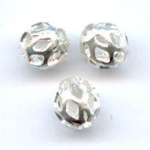Bolas filigrana de metal plateado.