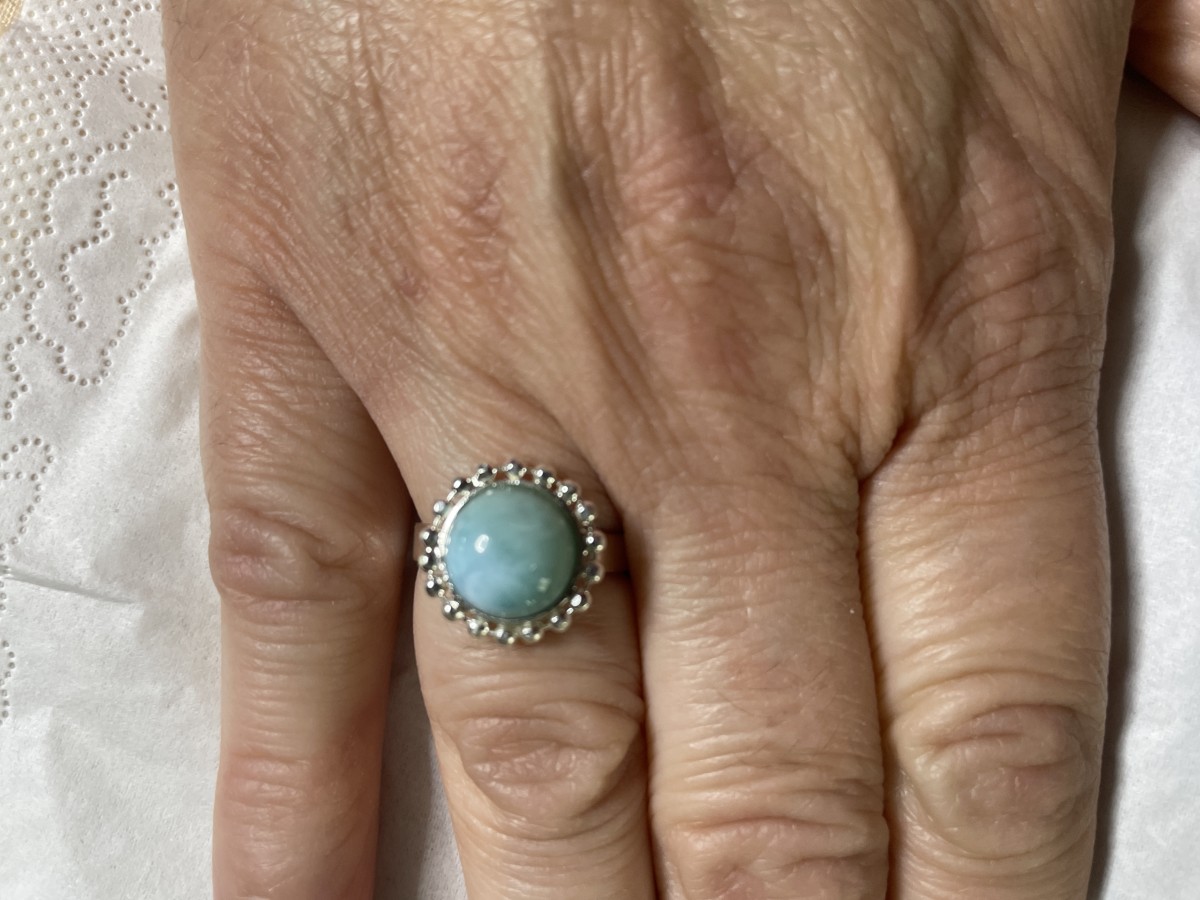 Este cabujón redondo facetado en piedra de Larimar le permitirá crear muchas joyas de fantasía.