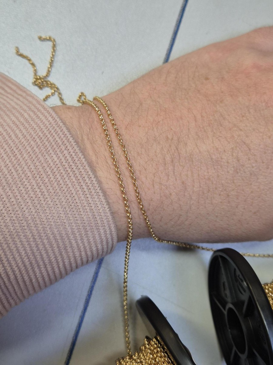 Esta cadena Jaseron es de color dorado . Fácil de llevar, te permitirá imaginar muchas joyas de fantasía DIY.