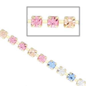 Cadena de latón bruto con strass de cristal tallado 2.10 mm Crystal/Light Peach/Light Rose/Sapphire x50cm