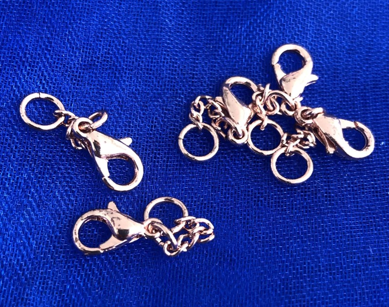 Cierre mosquetón 10 mm con cadena de extensión y su anilla Dorado rosa