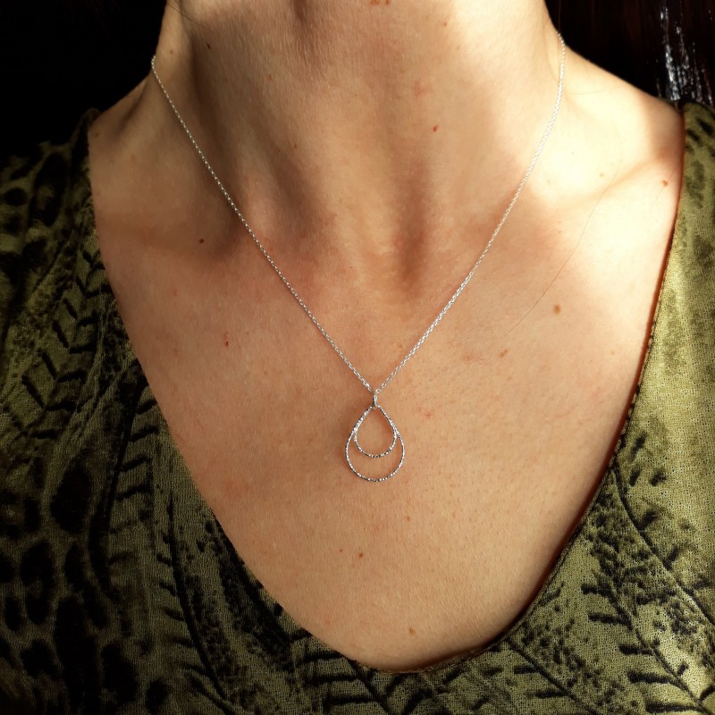Colgante doble gota diamantado 20x15 mm de Plata 925 x1