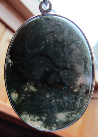 Colgante de metal con cabuchón fondo plano de Indian Agate 40x30 mm.