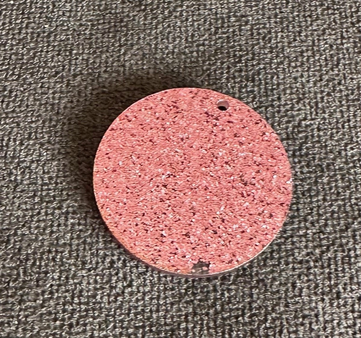 Añade un poco de luz y diversión a tu bisutería DIY con este colgante redondo de purpurina rosa en plexiglás.