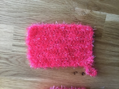 - Muestra 10 x 10 cm : 24 mallas, 40 filas con agujas 2 y 20 mallas, 22 filas con el gancho 4