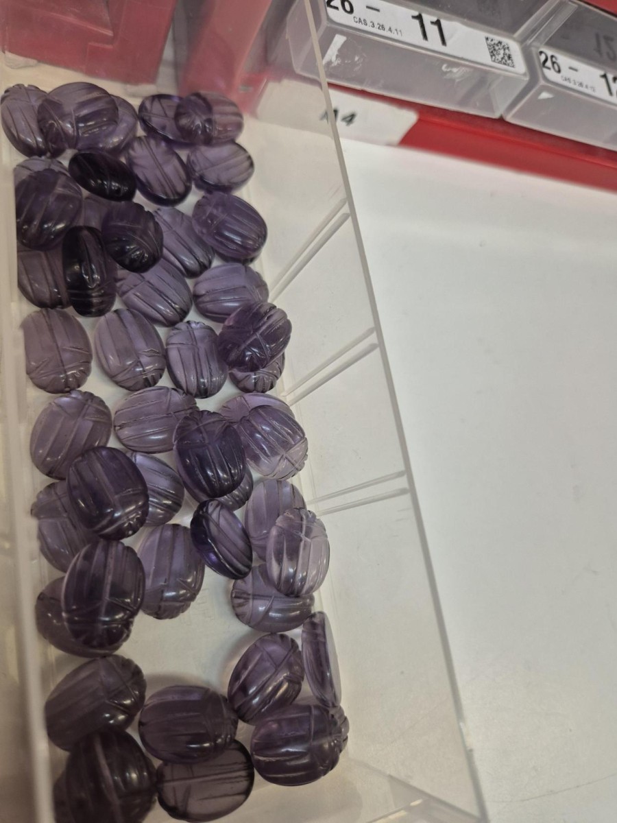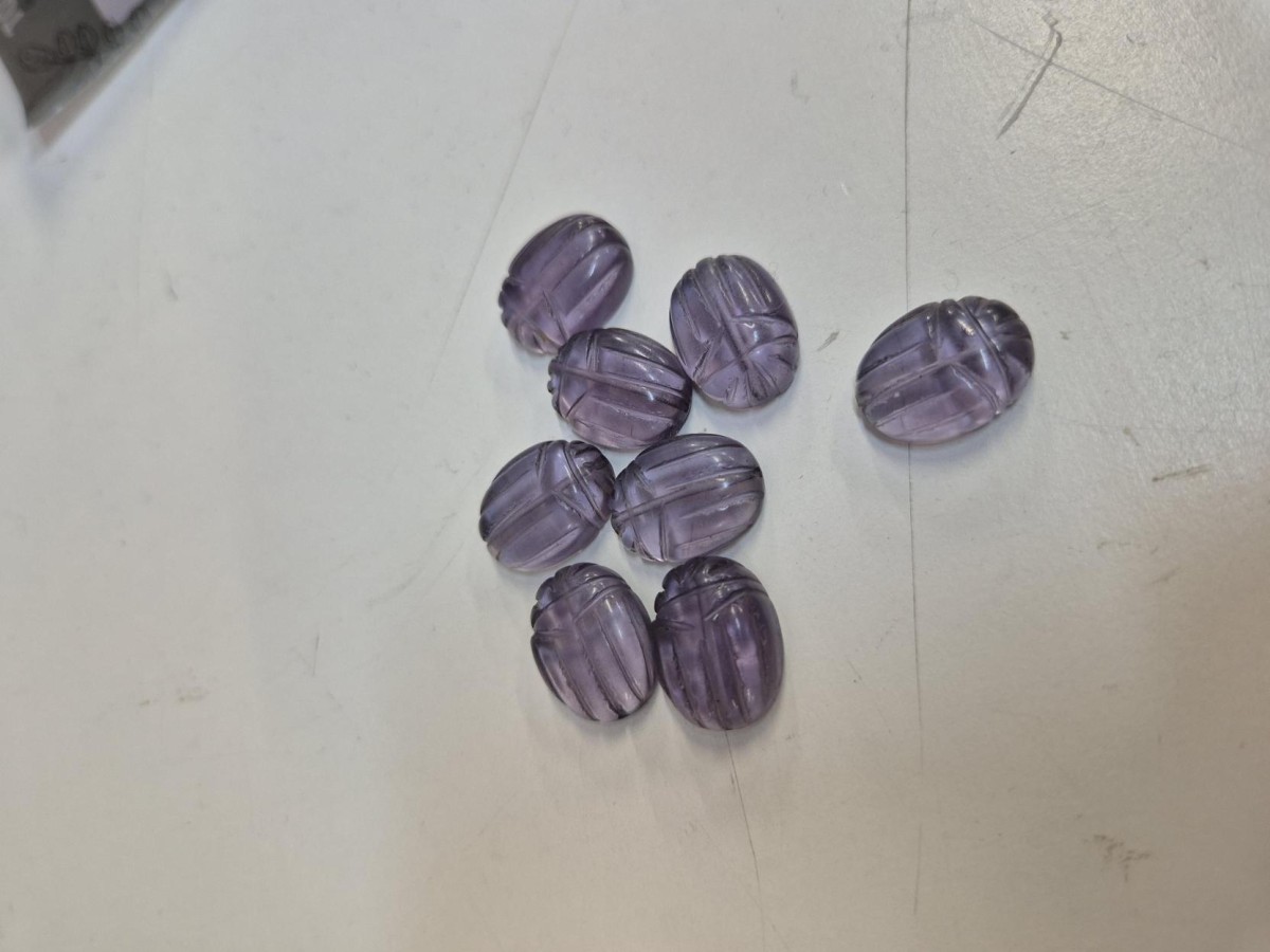 Mejore su bisutería con esta cuenta ovalada de amatista. Original y adorable, su forma de escarabajo ha sido grabada a mano. Este componente de joyería sorprenderá a muchos.
