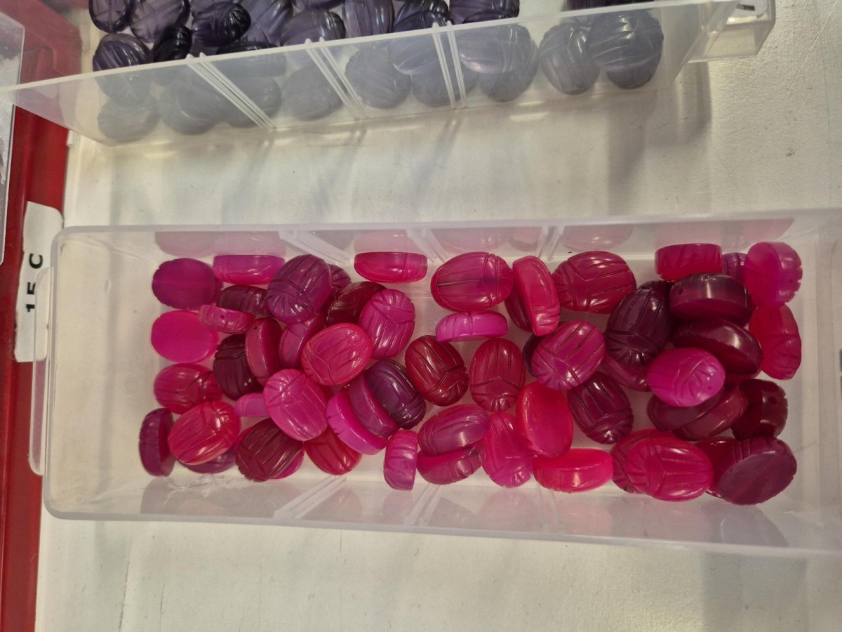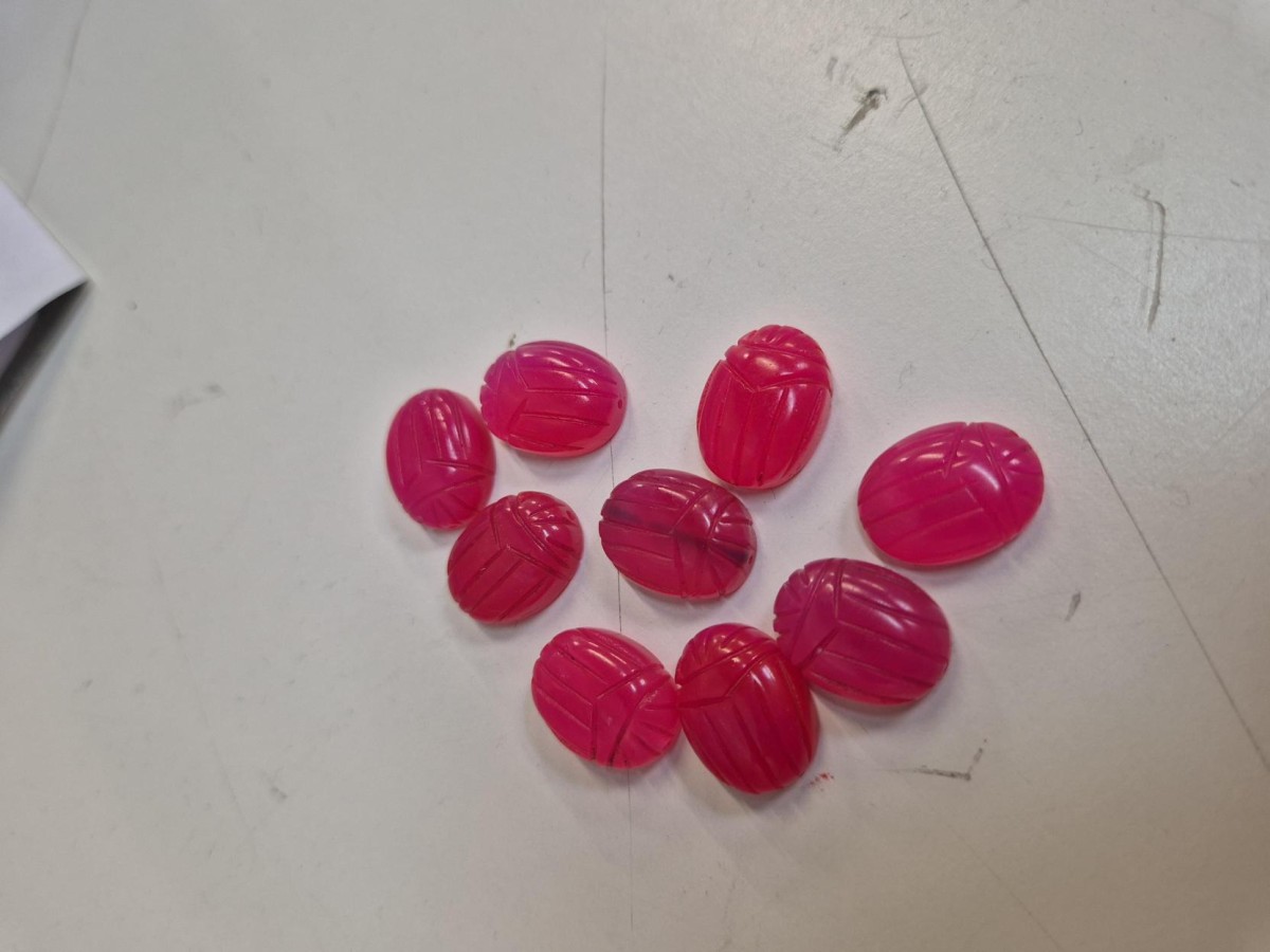 Realce su bisutería DIY con esta cuenta ovalada de calcedonia rosa. Original y adorable, su forma de escarabajo ha sido grabada a mano. Esta pieza de bisutería le sorprenderá.
