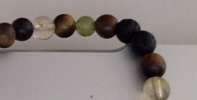 3. Utiliza hilo elástico y luego desliza estas gemas redondas. Obtendrás una pulsera de peridoto. Te daremos consejos para elegir el hilo elástico adecuado y hacer un nudo en el elástico.