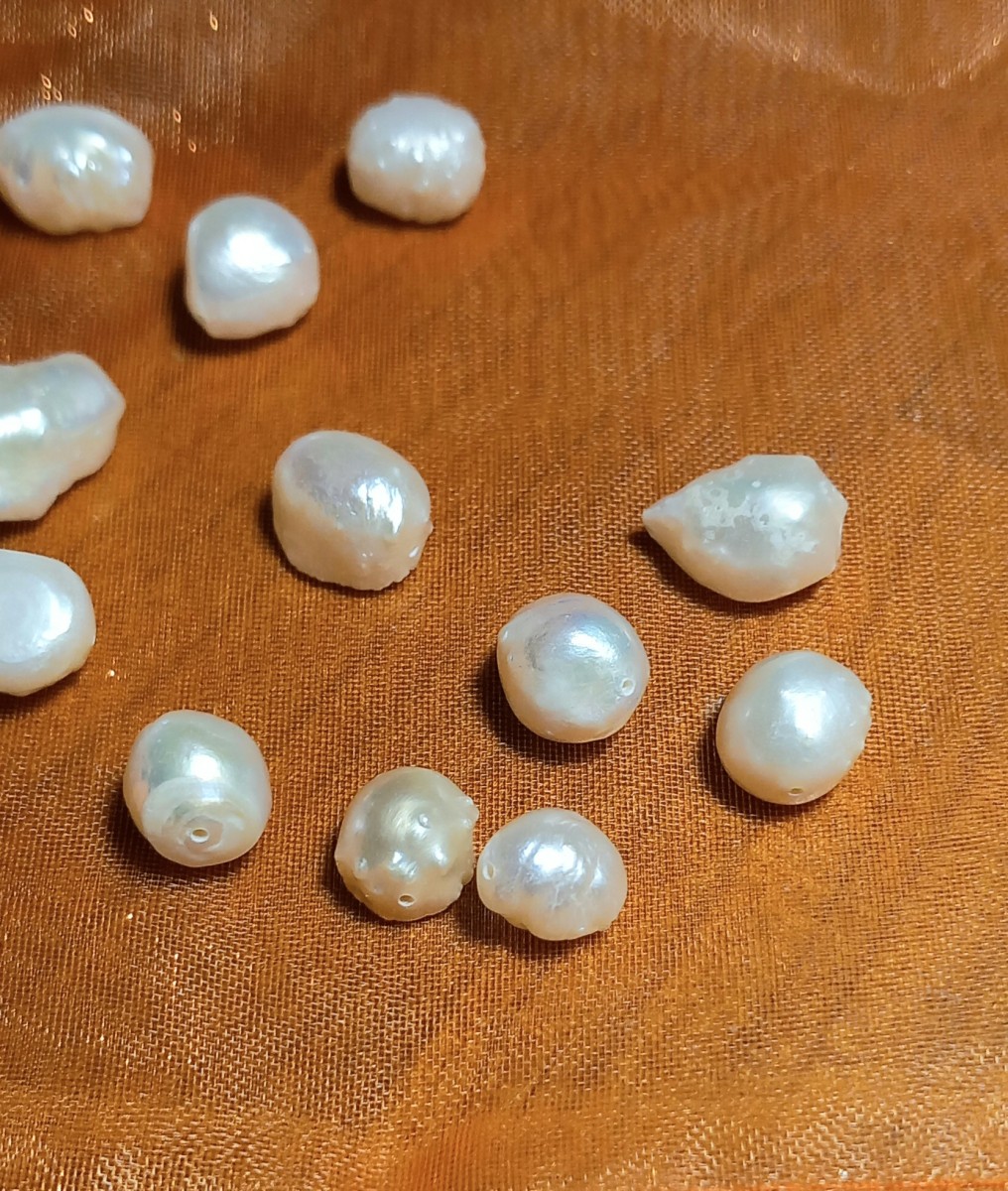 Cuentas de agua dulce Keshi - cuentas irregulares 11 mm - Blanco nacarado x6
