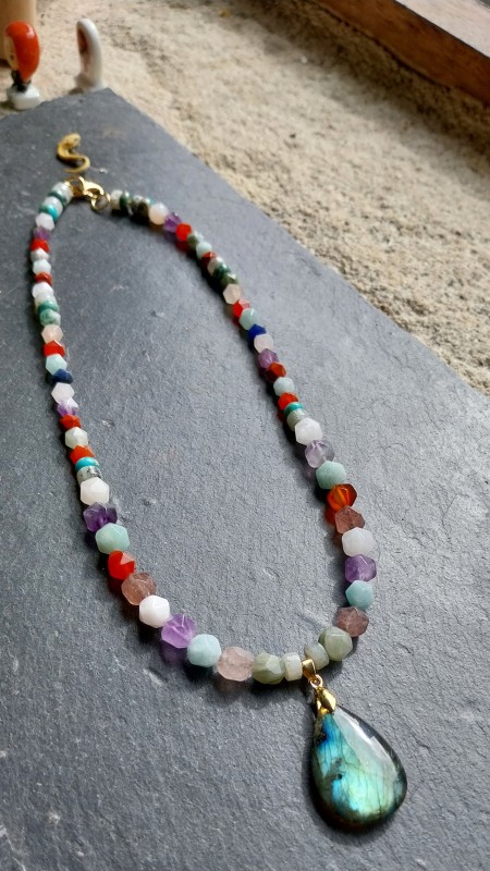Cuentas hexagonales 8x7 mm - mix de piedras gemas - Multicolore x38cm