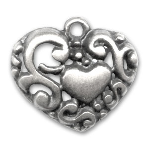 Dije corazón 18 mm plateado antiguo x1