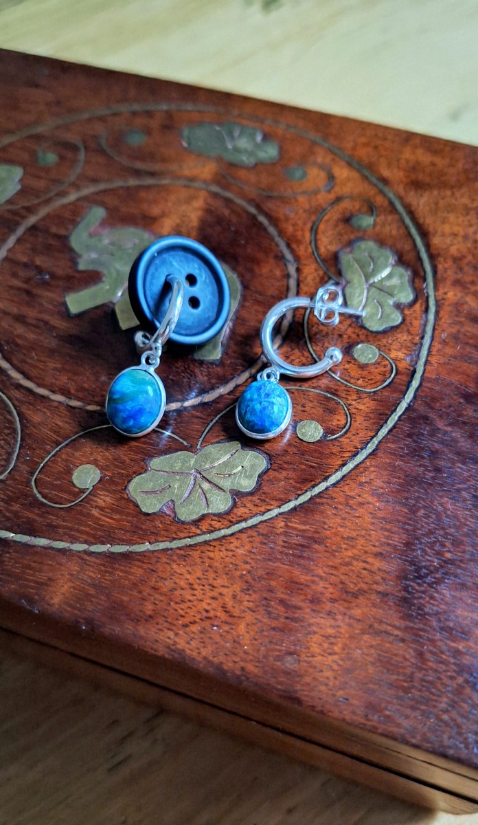 Dije de piedra ovalada 14x9 mm - Plata 925 - Crisocola