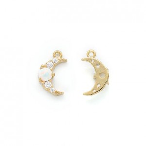 Dije midia luna con óxido de zirconio de imitación Opale 10x6 mm Dorado - Crystal