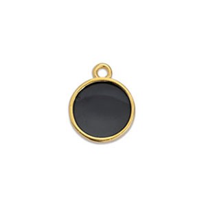 Dije redondo resina epoxi efecto vitral 14x11.5 mm Dorado con oro fino - Negro x1