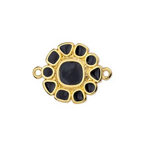 Entrepieza redondo flor de resina epoxi 24x18 mm Dorado en oro fino - Negro x1