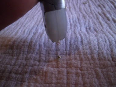 Coloque el cabujón, con la punta hacia arriba, sobre una superficie suave y aterciopelada.