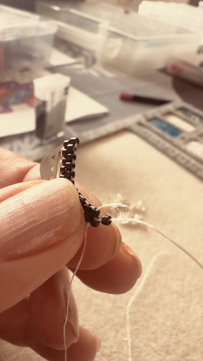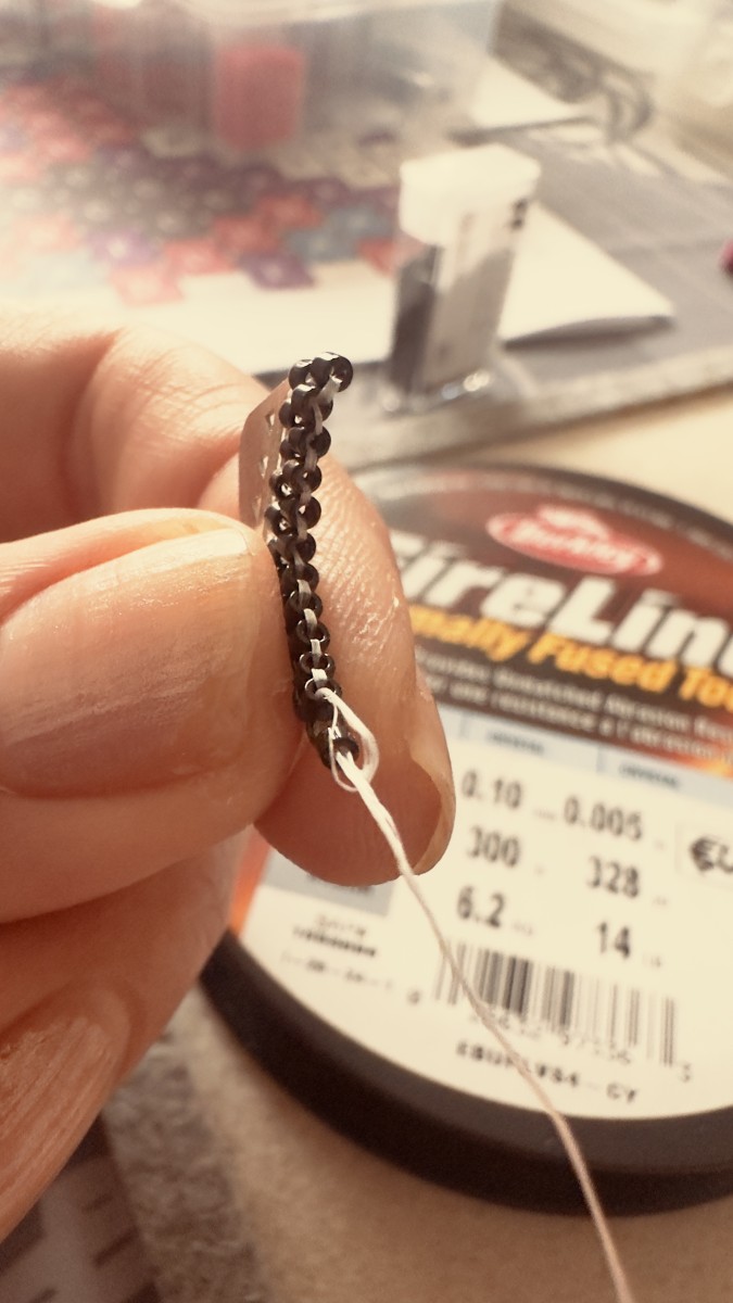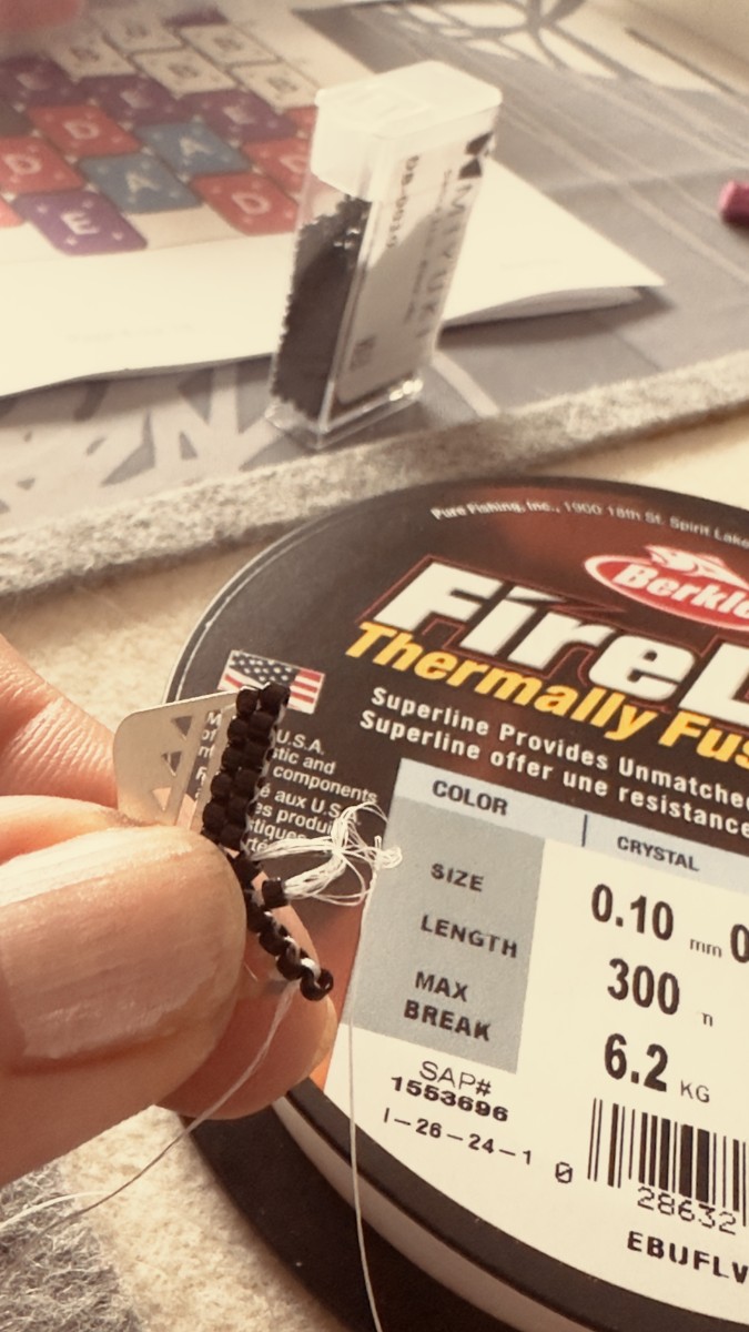 De plus, le FireLine n’est pas forcément le fil le plus adapté pour le tissage peyote ou brick stitch, car il est moins souple que des fils comme le Sono ou le Miyuki.