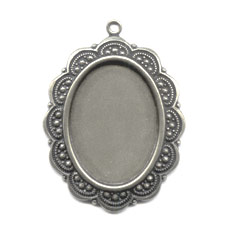 Medallón de metal. Alto 40 mm, ancho 30 mm.Permite acojer un cabujón 25 x 18 mm fondo plano para pegar