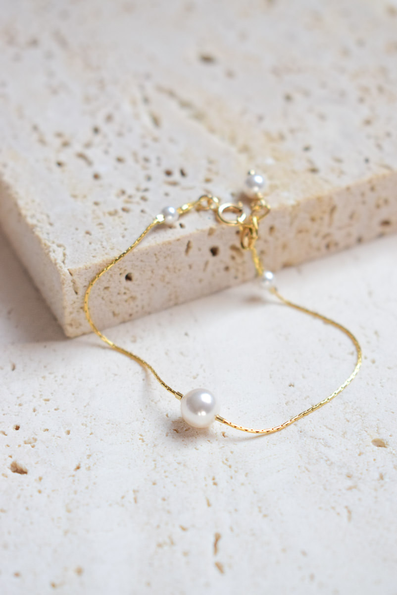 Utilice un cordón y cuelgue de él un pequeño dije. Tendrás una bonita pulsera de fantasía, sencilla y fácil de hacer.