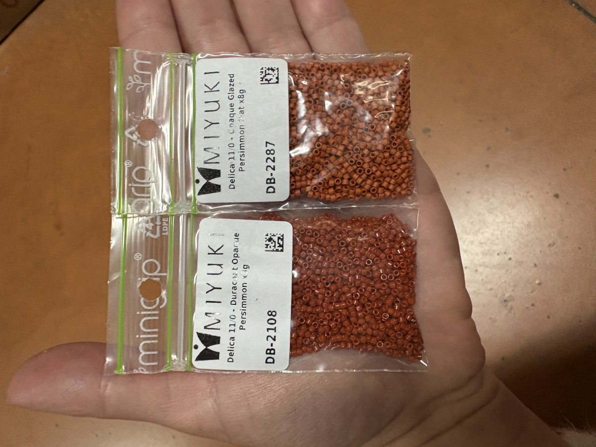 Cuentas japonesas de talla 11/0. (aprox. 1.27 mm en dirección del agujero, 1.6 de diámetro)