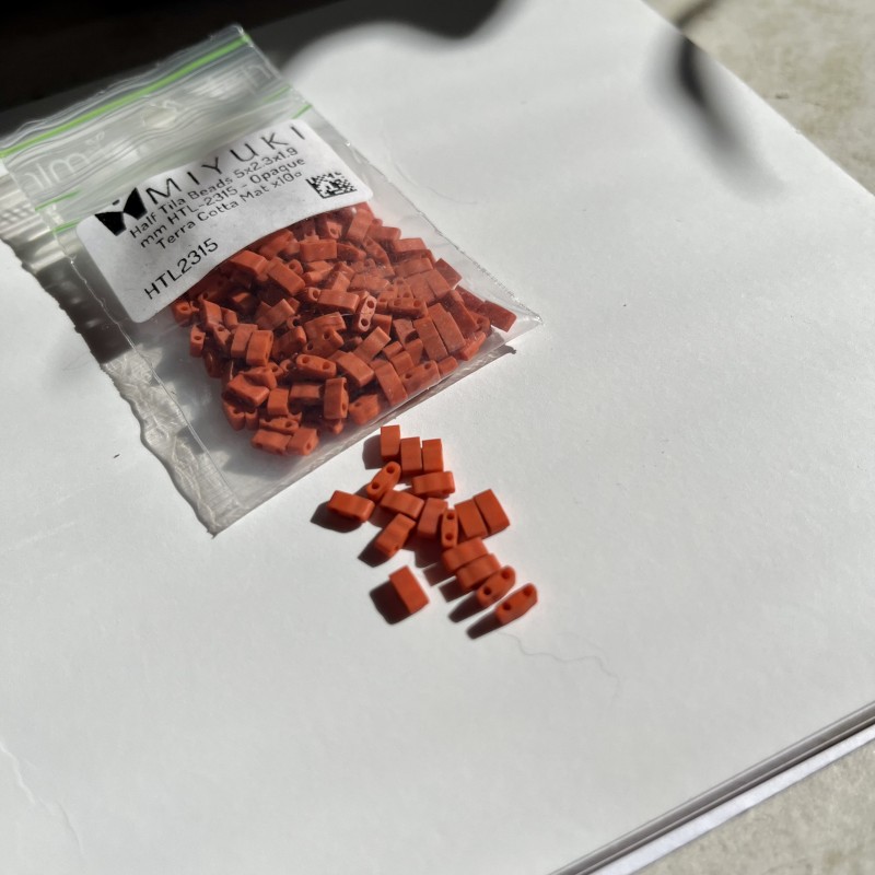 Advertencia : Por cáusa de su forma, la finura del vidrio y la perforación (2 agujeros), las Half Tila Beads Beads son más frágiles que los otros productos Miyuki.