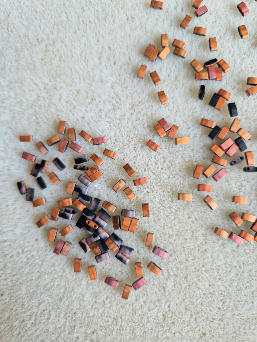 Por cáusa de su forma, su finura y la perforación que llevan (2 agujeros), las cuentas Tila Beads son más frágiles que las otras cuentas de la marca Miyuki.