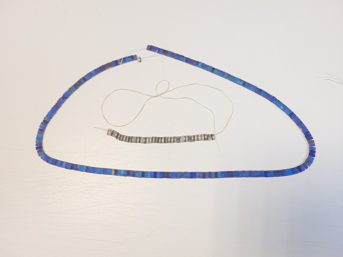 Advertencia : Por cáusa de su forma, su finura y la perforación que llevan (2 agujeros), los abalorios Tila Beads son más frágiles que los otros abalorios de la marca Miyuki.