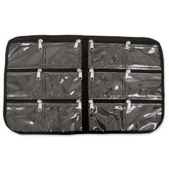 12 bolsillos con cierre : cada bolsillo puede contener 3 cajitas tipo Tic-Tac modelo 5 sea un total de 36, 6 cajitas tipo Tic-Tac modelo 6 sea un total de 72.
