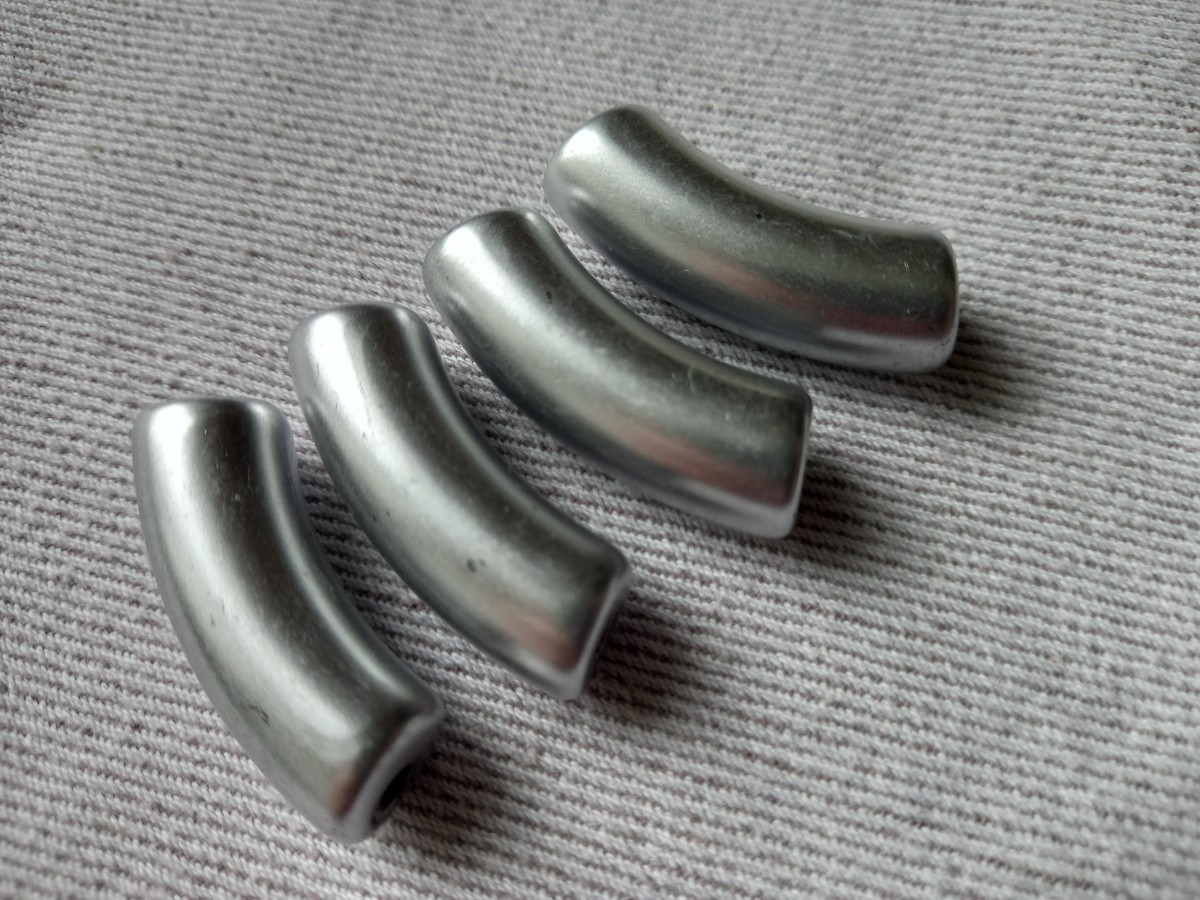 Estas cuentas de plata mate en forma de tubo curvado están hechas de acrílico . Inspírate en su original forma para hacer un montón de bisutería DIY.