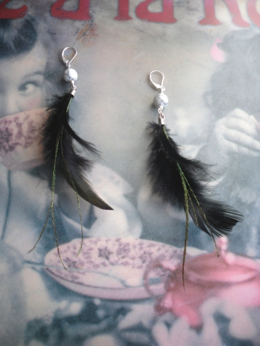 Pluma de pava montada en un terminal rodiado 6x4mm.