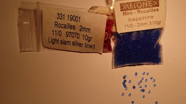 Tamaño 11/0 (aproximadamente 1,27 mm en el sentido del agujero, 2 mm de diámetro)