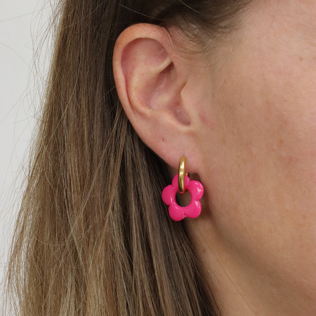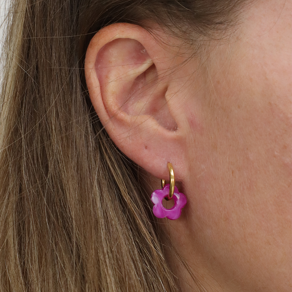 Lo bueno de estos pendientes es que se pueden llevar tal cual o personalizarlos con colgantes de resina o grandes eslabones acrílicos. Este año, los preferimos con un colgante de flor. Seguro que ya has visto estos pendientes tan modernos y coloridos, ¡están por todas partes!