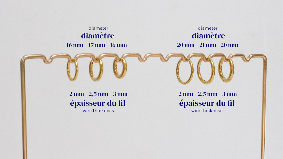 Para hacer estos Pendientes de aro de moda, lo más importante es elegir los pendientes adecuados. Para ello, debes tener en cuenta dos criterios: el diámetro del hilo y el diámetro de los Pendientes de aro.