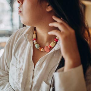 Despídete de las joyas lisas y sencillas: en 2025 queremos contraste y carácter. La mezcla de materiales es una tendencia esencial. Mezclamos acero inoxidable con cordón de colores, perlas naturales con acetato llamativo o rafia con elementos de Dorado. Cada material aporta una emoción, es atrevido, lo cambia todo.