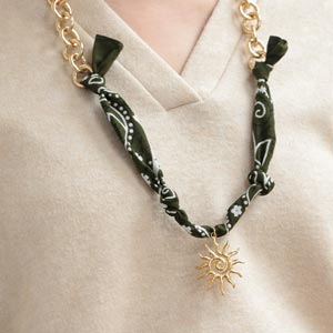El pañuelo está de vuelta... ¡y no sólo en el pelo! En 2025, se está convirtiendo en un accesorio por derecho propio, trenzado, anudado y retorcido sin cesar. Se puede llevar alrededor de la muñeca como una pulsera, atado a un bolso como una joya, o incluso como parte de un collar para un look colorido y bohemio. Con sus vibrantes estampados y colores veraniegos, aportará un toque fresco y vintage a todas tus creaciones. Combínalo con perlas, dijes o hilos de colores para conseguir un efecto 100% a la moda.