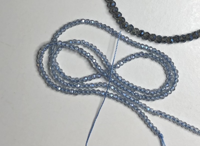 Hilo de 34 cm aproximadamente, o sea 340 cuentas.
