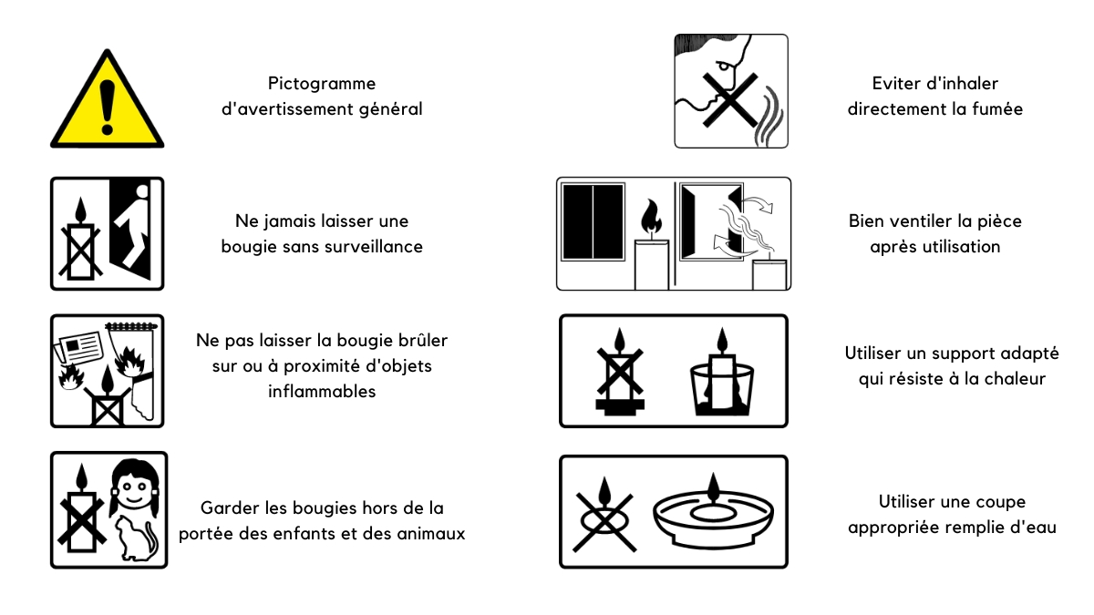 Obliga a mostrar una serie de normas de seguridad, como los riesgos asociados a la combustión de las velas o el riesgo de incendio, así como recomendaciones.