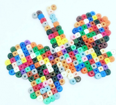Midi tienen un diámetro de 5,0 mm y pueden emplearse de dos maneras para realizar el dibujo: se pueden planchar o coser. El modo de planchado será el que mejor conoces. Colocar las cuentas en una placa de clavijas y planchar (recuerda que el planchado lo debe hacer un adulto) hasta que se fundan. En el modo para presionar, las cuentas se fijarán a presión a una placa especial mediante un palillo especial. Hay dos tipos de placas de clavijas: una con clavijas en una cara y otra con clavijas en ambas caras. Este tipo de cuentas no se pueden quitar y usar de nuevo. Además, puedes realizar dibujos muy bonitos cosiendo las cuentas.No adecuado para los niños menores de 5 años