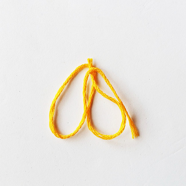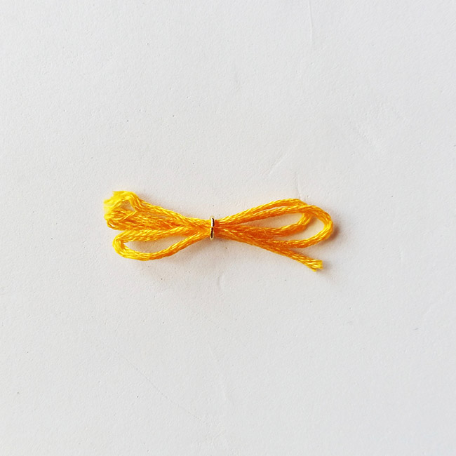 Paso 1 : Haga la borla con 5 x 4 cm (20 cm) de hilo de bordar. Agregue el anillo y termine apretando con un alambre (aquí dorado).