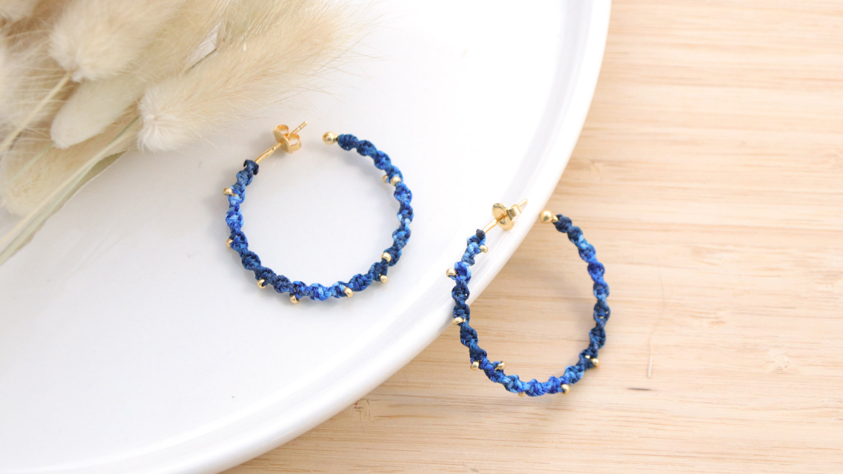 Corta 1,5 m de hilo, dóblalo por la mitad y haz un nudo criollo, manteniendo la misma cantidad de hilo en ambos lados.