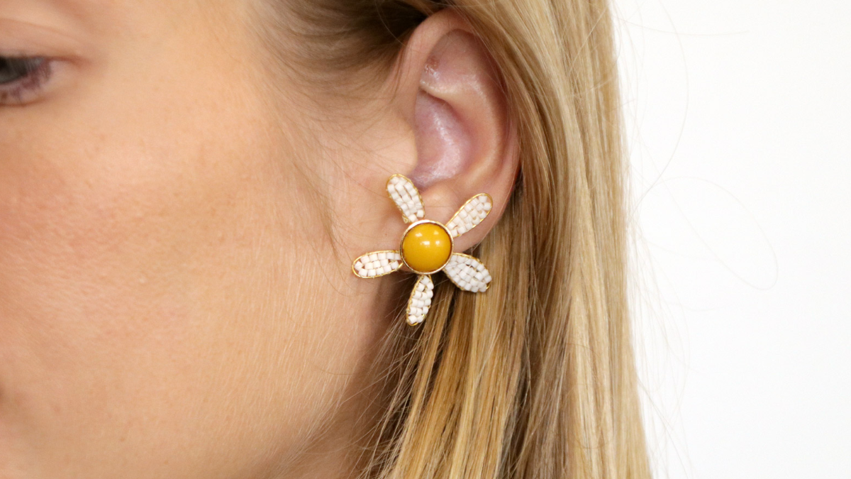 En este tutorial te mostramos cómo hacer 5 pétalos, pero puedes hacer más, o puedes poner 2 ristras de pétalos. También puedes cambiar el color de las cuentas, utilizar cuentas de semillas 11/0 o cambiar el cabujón que viene en diferentes colores. Lo que también es interesante es que puedes quitar la flor y llevar las tachuelas con el cabujón solas si te apetece. En este caso, no hay que pegar el tejido al bucle.