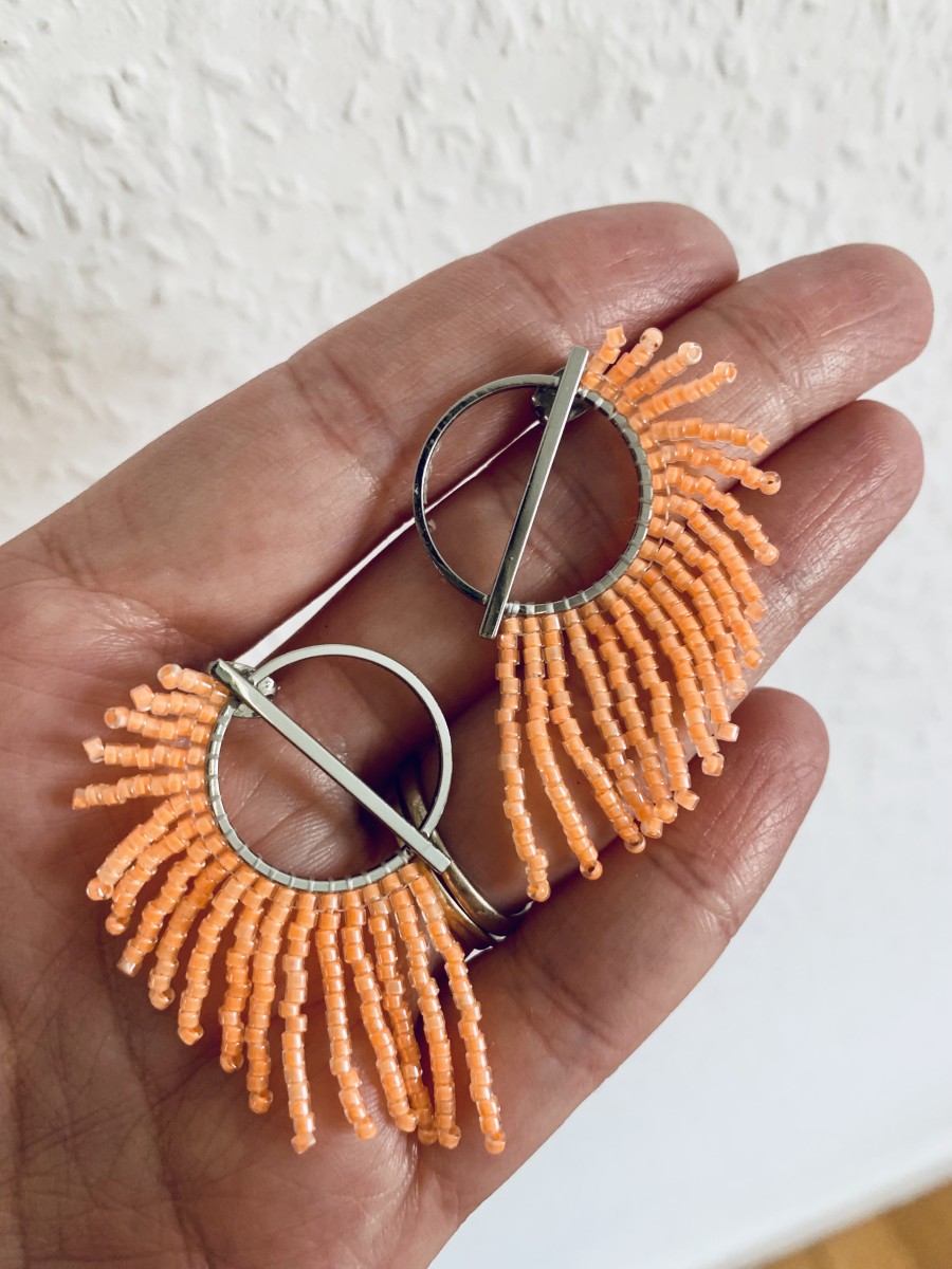 Raphaëlle te invita a realizar este par de pendientes asimétricos con flecos de cuentas. Estos pendientes están realizados con perlas Miyuki Delica 11/0. Para hacer estos flecos y fijarlos a la base del pendiente, necesitarás saber hacer Brick Stitch. El primer paso consiste en tejer una base de perlas utilizando Brick Stitch y, a continuación, añadir los flecos a esta base. Por eso este tutorial está dirigido a personas que ya han hecho algunos proyectos de Brick Stitch.