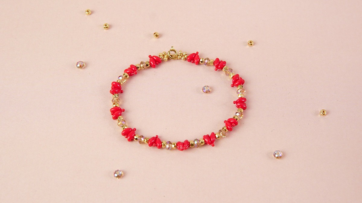 Los colores tradicionales para una pulsera de San Valentín son el rojo, el rosa y el blanco. Sin embargo, no dudes en elegir colores que encajen con las preferencias de la persona que reciba la pulsera. Una pulsera totalmente dorada también quedará muy bonita y combinará a la perfección con este par de pendientes: pendientes de gota de rocalla dorada Miyuki y Micro Spacers. Además, estos pendientes también utilizan cuentas Micro Spacers.
