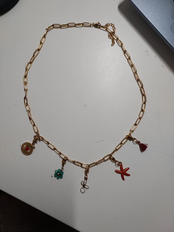 Para este tutorial, he elegido utilizar una gargantilla de malla rectangular para hacer el tutorial muy accesible a los principiantes, que sólo tienen que hacer los charms para añadirlos a los eslabones de la cadena. Pero tenemos otras cadenas de acero inoxidable si quieres un estilo diferente. También puedes coger más cadena para hacer una versión de varias filas, ¡que te vendrá genial como accesorio para tus conjuntos de verano!
