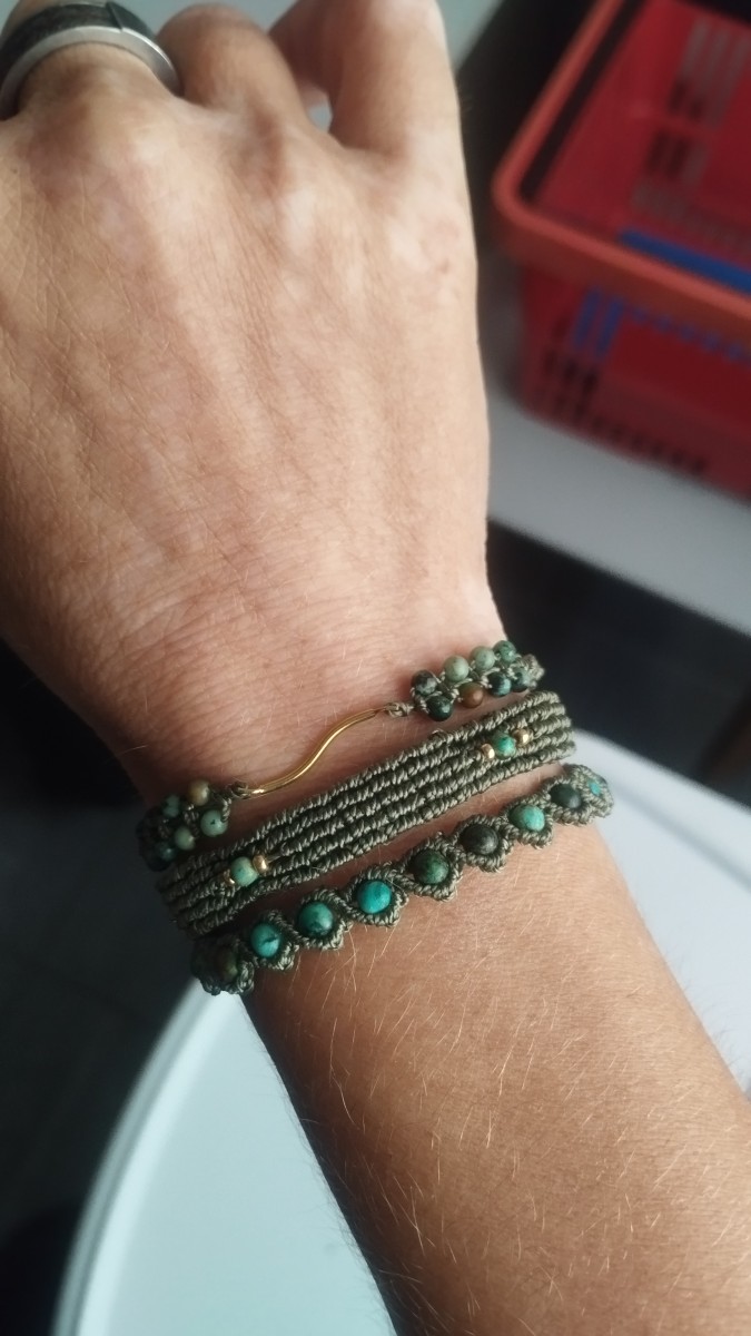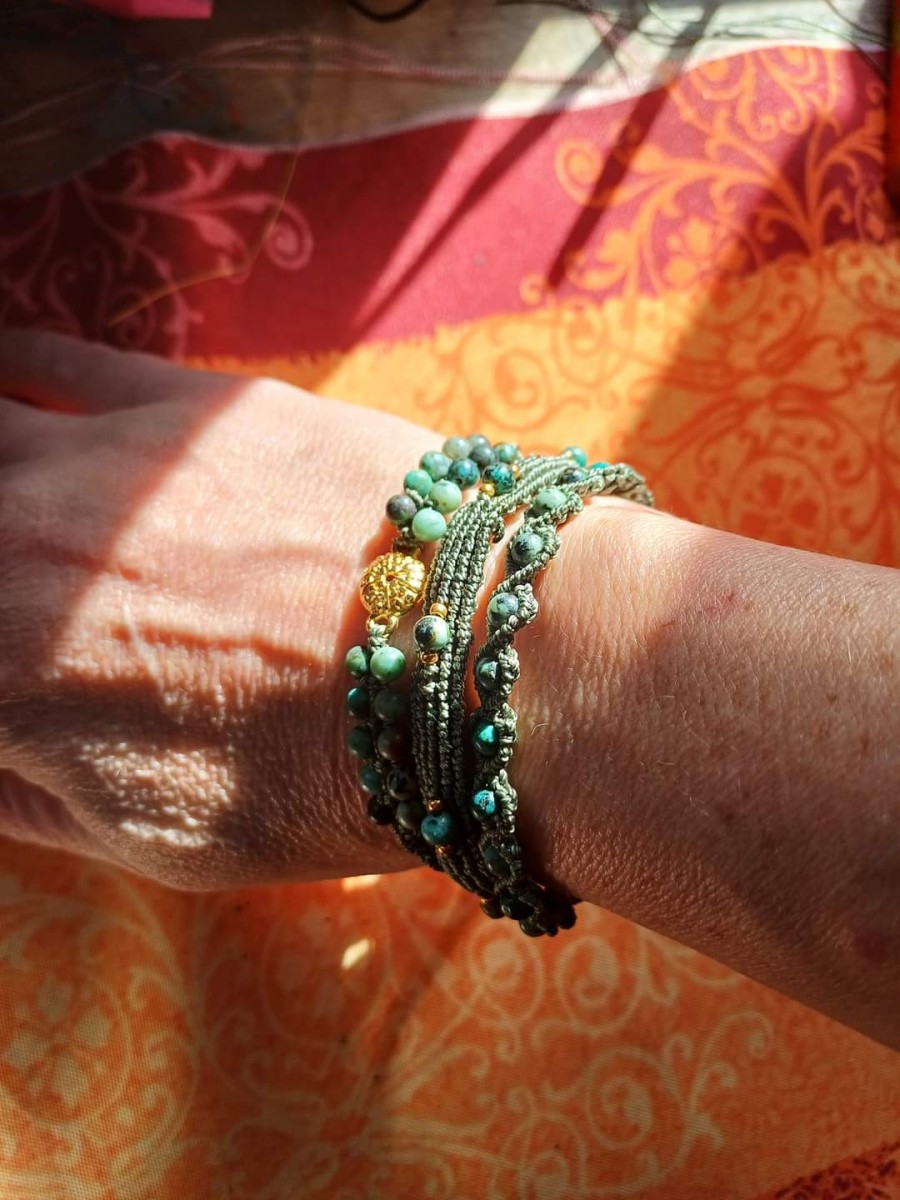 Si te gusta este tipo de creación, te invito a que veas el tutorial que hizo Anne en 2021. Causó sensación cuando se publicó, así que esta es una buena oportunidad para descubrirlo o redescubrirlo: Pulsera Multirang con Turquesa Africana y Cuentas de Micro-Macramé.